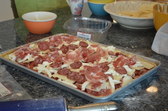 Marianne, Lindsay, Lynn and I got down to it.  We made dough and layered all the ingredients into our Easter pie.  We followed Frankie’s recipe and soon the kitchen was filled with the unforgettable delicious  scent of Italy and Easter Saturday’s past.  We toasted ourselves and the memory of Frankie with good wine, lots of laughs, and hugs and kisses all around. Salute!