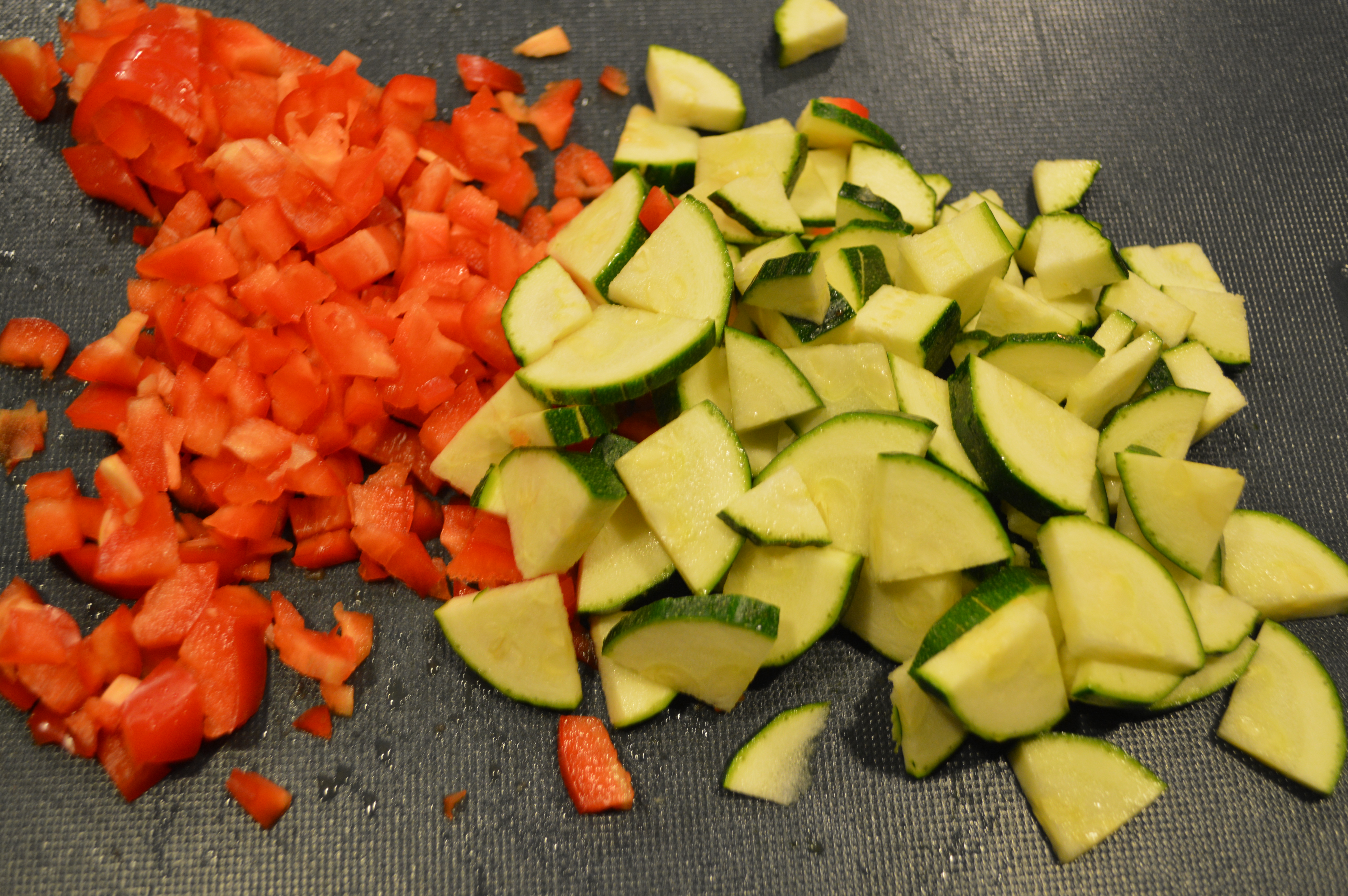 4 tbls. olive oil, 4 ounces pancetta, 1 onion diced, 2 cloves garlic minced, 1 celery stalk chopped, 3 carrots sliced, 42 ounces chicken broth (canned or homemade), 1 red pepper diced, 1 zucchini sliced in quarters, 1 cup frozen Italian green beans, 1/2 can tomato paste, 1 can chopped tomatoes, 1/2 bag lentils, 1/3 cup quinoa 1 small Italian-type cheese rind, fresh ground pepper to taste
